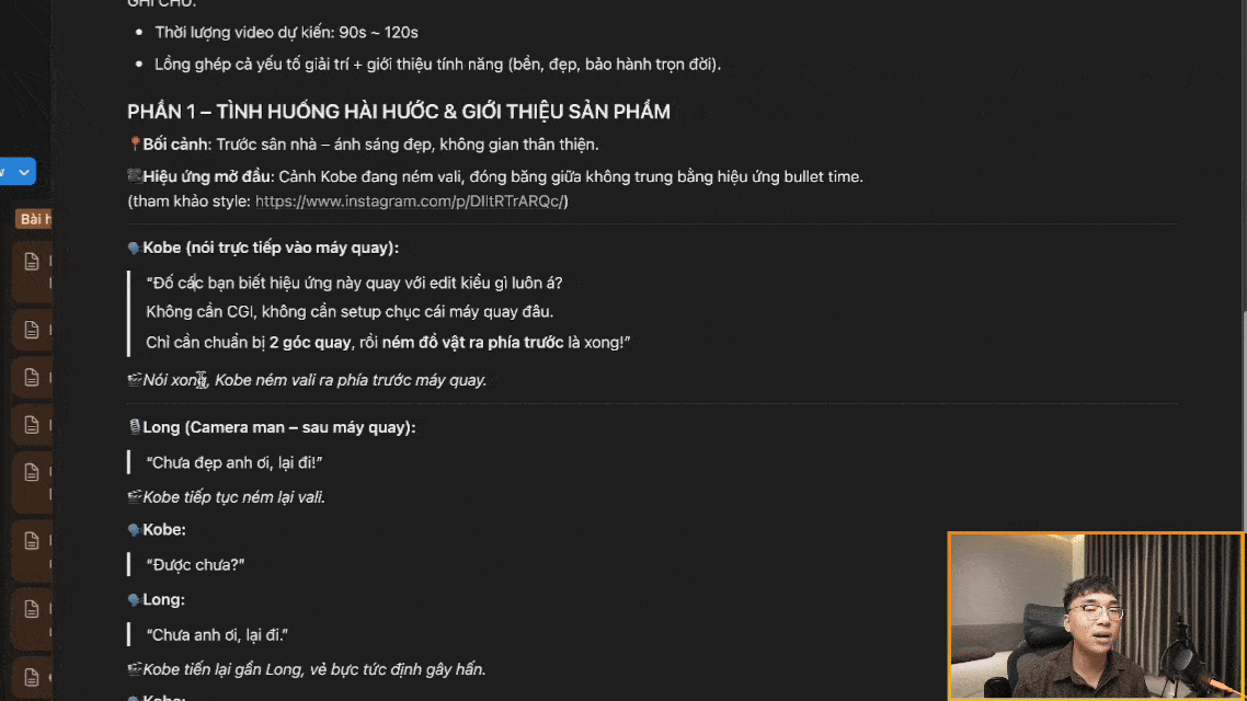 Trực tiếp bóc tách toàn bộ quy trình video series “Vũ Trụ Kobe”.
